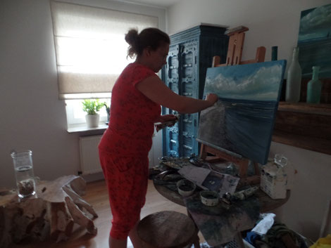 Angefangen hat alles mit den Wunsch, die innere Energie in etwas Kreatives umzuwandeln und dabei die innere Ruhe und den inneren Frieden zu finden, also den Ausgleich zu meiner Persönlichkeit. Die Weite des Horizontes im Kontrast zu dem bewegenden Wassser zeichnen genau die Gedanken, die mein Leben prägen. Als Sternzeichen Fisch und Element Wasser als prägende Eigenschaft brauchte ich für meinen kreative Arbeiten einen festen Rahmen mit beweglicher Farbe. Diesen fand ich dann in der Ölmalerei.